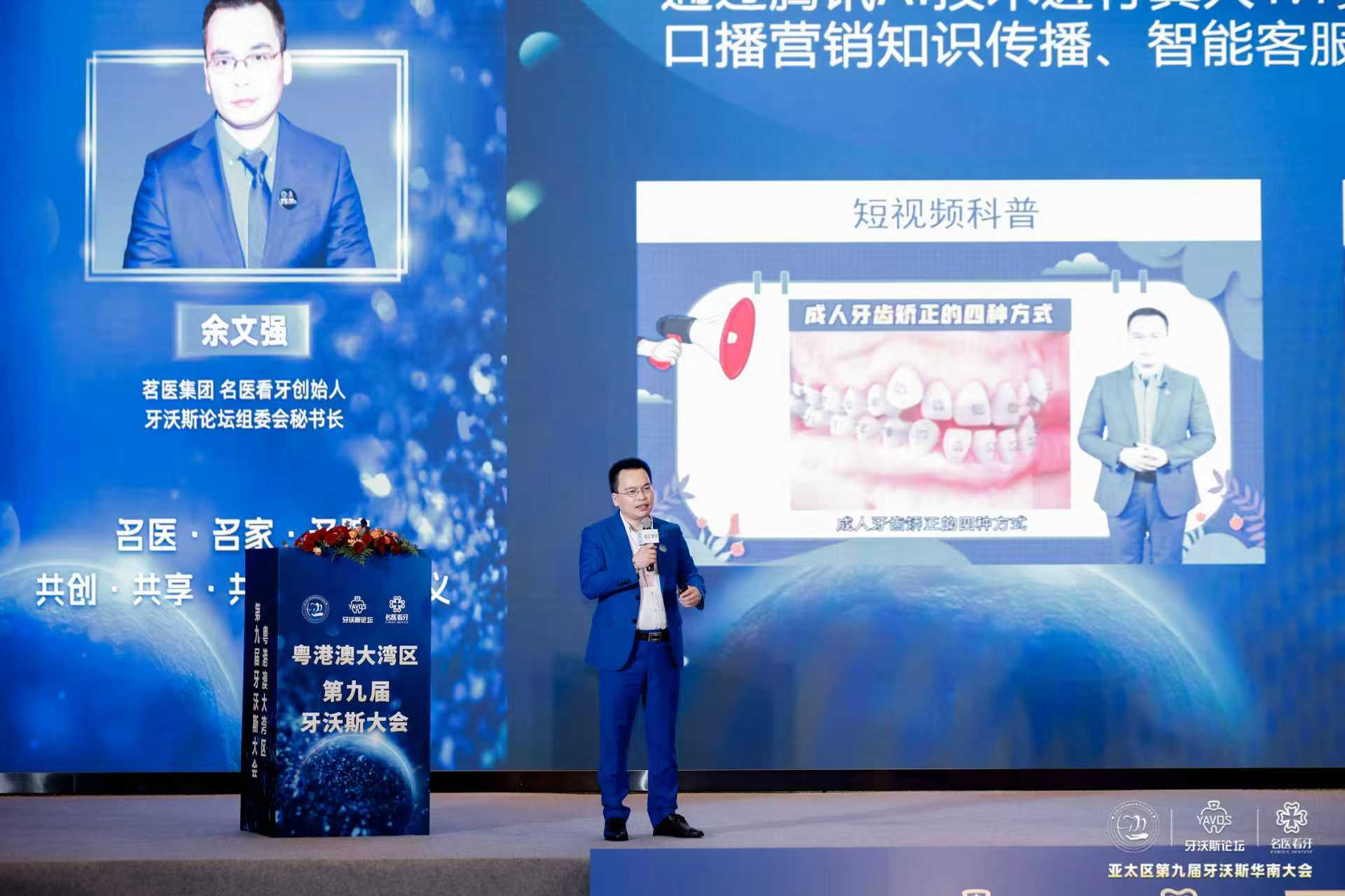 作为本次主办名医看牙(茗医口腔医生集团)创始人余文强压轴出场,就“2025口腔机构如何搭建流量平台守住自己方圆三五公里客户实现破局增长”做了精彩发言。